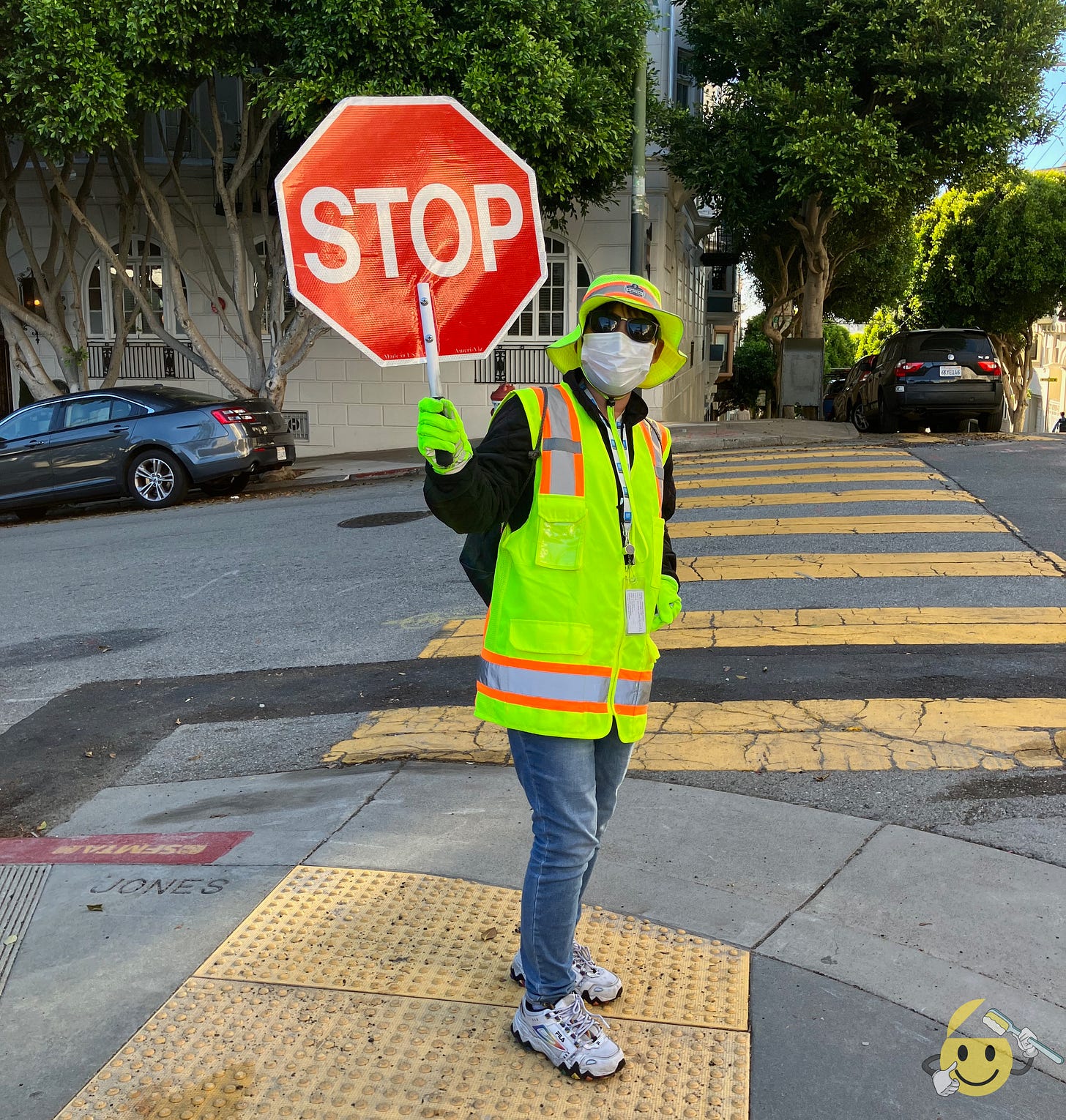 One such person in my life is the crossing guard in the photo below. I don’t know her name but I see her each weekday when I step outside around the time a nearby school lets out.